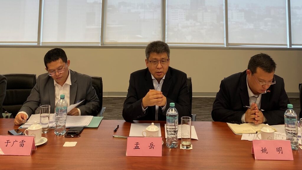 2025925,中国商务部外贸司孟岳副司长率团莅临秘鲁中资企业协会考察调研,与在秘中资企业就贸易、投资合作等有关事宜进行了座谈和交流。驻秘使馆经商处姚明参赞出席座谈会。